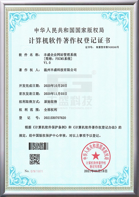 即日起,其版權(quán)將得到“中國版權(quán)保護中心”的有效保護。該證書的獲得,意味著豐盛科技的自主研發(fā)能力和創(chuàng)新能力在具有獨立知識產(chǎn)權(quán)的軟件開發(fā)領(lǐng)域得到了權(quán)威的認可,提升公司的核心競爭力。